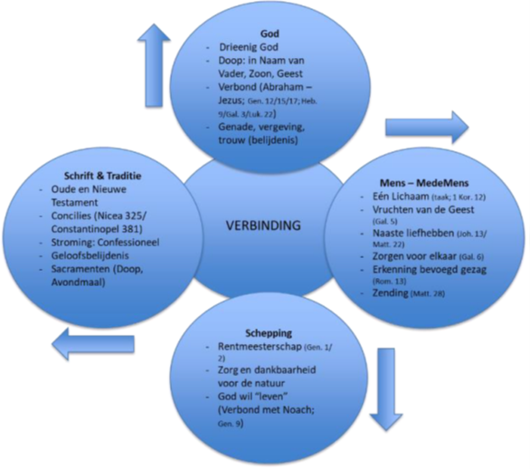 kijken we naar de horizontale verbinding met elkaar; hierin zijn we samen als lichaam van Christus. Jezus leerde ons dat liefde zichtbaar wordt in dragen, dienen, recht doen en zorg tonen voor elkaar. Verbinding is nooit alleen gevoel, want het vraagt onze actie. Zo leven we als mensen van het verbond: verbonden met God, met elkaar én met de wereld die Hij ons toevertrouwt. De figuur die we samen bekeken, laat die lijnen met verwijzingen naar de Schrift mooi zien.